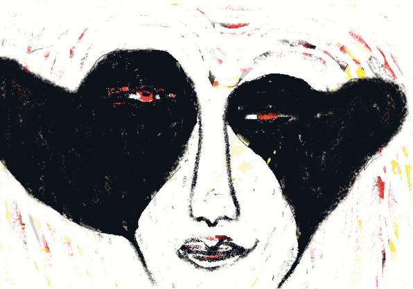 Die Künstlerin liebt Hell-Dunkel und Farbkontraste und gibt dem Kombinationen und deren Wirkungen in ihrem Werk einen großen Raum. Beim Motiv Herzschmerz arbeitet Christel Schulte-Hanhardt nur nuanciert mit bunten Tönen.